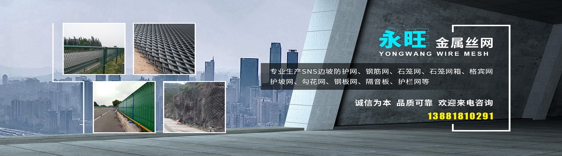 服務(wù)熱線: 成都市永旺金屬絲網(wǎng)有限公司是一家研發(fā)、生產(chǎn)、加工、銷售為一體的責任制企業(yè)公司。本公司“以誠信為本、以服務(wù)社會已任、以科學創(chuàng)新為理念”。 專業(yè)生產(chǎn)SNS邊坡防護網(wǎng)、鋼筋網(wǎng)、石籠網(wǎng)、石籠網(wǎng)箱、格賓網(wǎng)、護坡網(wǎng)、勾花網(wǎng)、鋼板網(wǎng)、隔音板、護欄網(wǎng)等。產(chǎn)品主要運用于鐵路,高速公路,橋梁,隧道,機場,礦山,河道,球場,碼頭,港口等多個領(lǐng)域。 本公司期待與您長期合作,希望與您共創(chuàng)輝煌,我們愿與各業(yè)朋友精誠合作,共創(chuàng)美好未來,希望各業(yè)朋友來函來電